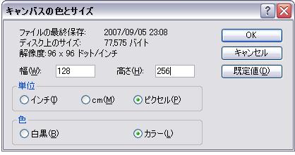幅と高さをそれぞれ128と256に指定してOKをクリック。